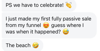 Laura joined Funnel Queen Mastermind without ever making a passive sale. We mapped and launched her funnel, and she instantly made a sale while on the beach and after days of not posting on social media.