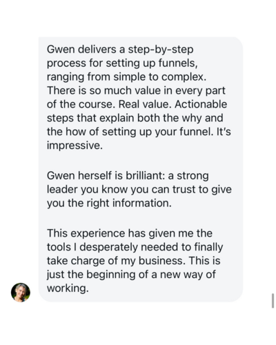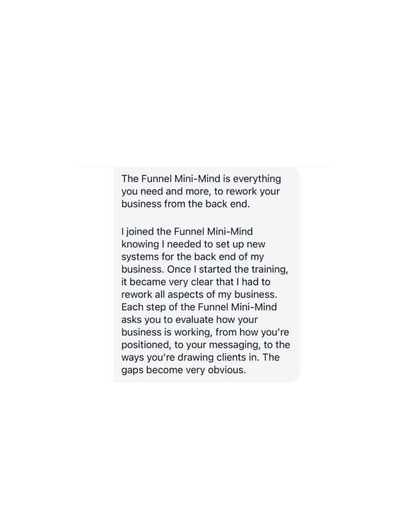 "You don't just learn how to map and set up a funnel - you learn how to arrange your offers in a user journey that brings the most value and joy to you AND your ideal client"
