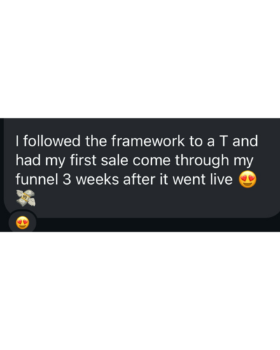 "I followed the framework to a T and had my first sale come through my funnel 3 weeks after it went live"